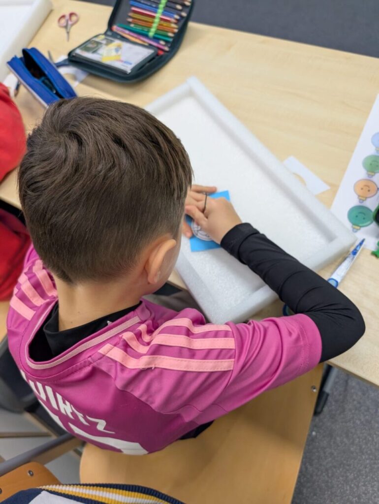 Im ganzen Schulhaus gab es zehn verschiedene Stationen. Dort konnten wir ganz viele weihnachtliche Sachen machen. In einem gemütlichen Teestübchen haben wir gerätselt und Aufgaben mit Symmetrie gelöst. Wir haben auch Weihnachtskarten gestaltet, besondere Weihnachtskugeln angefertigt und kleine, lustige Wichtel gebastelt. Es gab Stationen für alle Sinne und tolle Sportspiele. Wer wollte, durfte Plätzchen backen. Das hat lecker gerochen! Wir haben auch Weihnachtslieder mit coolen Instrumenten gespielt und spannende Escape-Spiele gelöst, um dem Weihnachtsmann zu helfen. Besonders cool fand ich die Video-Drehs. Wir haben Märchen in die heutige Zeit verändert und als Videos aufgenommen.